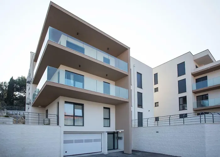 Luxury Apartment Marjan - Black Split tiene terraza y está situado a unos 25 minutos andando de la Playa de Kastelet. Los huéspedes que viajen en coche tienen a su disposición un aparcamiento en las instalaciones.